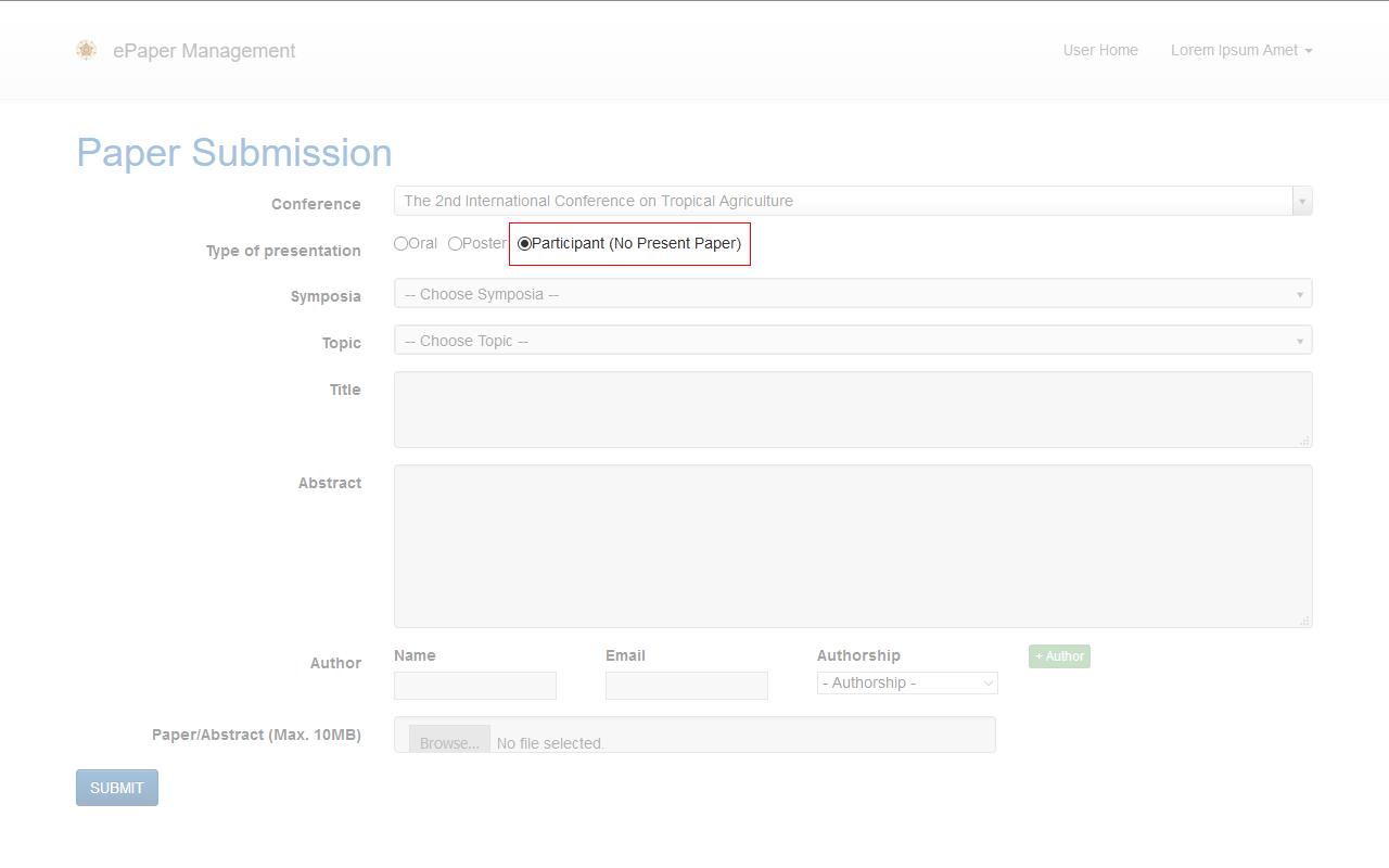 This tutorial will guide you through the registration of your ePaper Management account if you will be attending but not presenting at the conference.