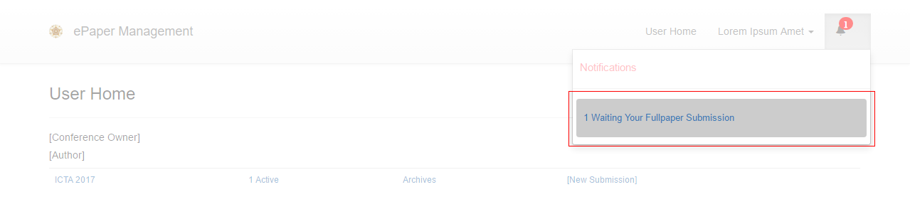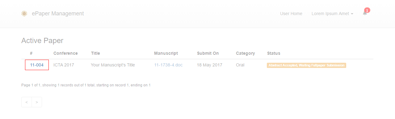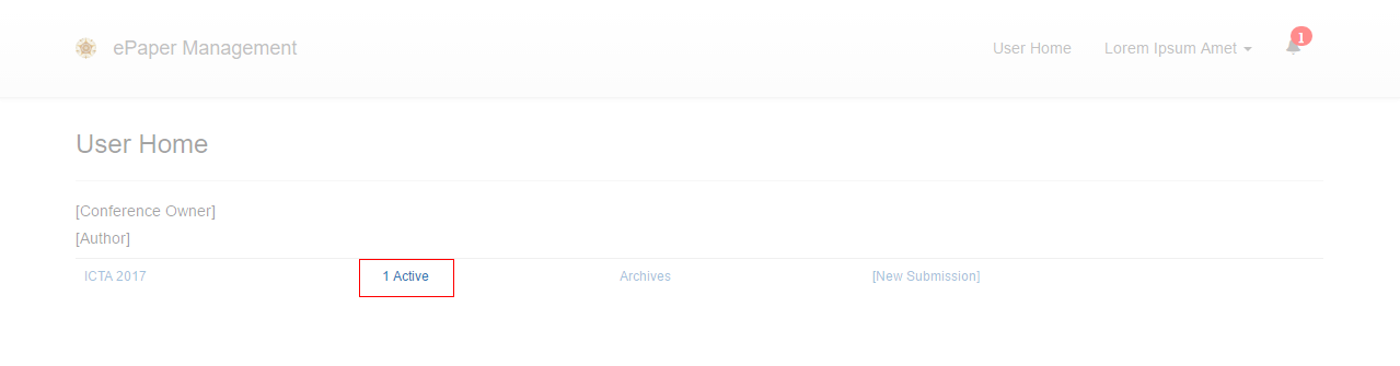 2. In the User Home page, click your Active paper.