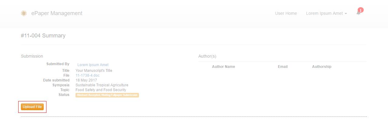 4. Your paper’s summary will appear. Click the Upload File button.