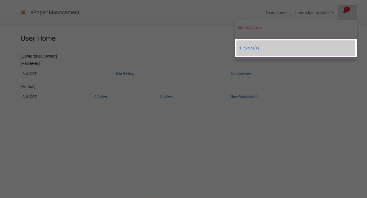 2. Once you are logged in, click on your name in the top-right and select Invoice.