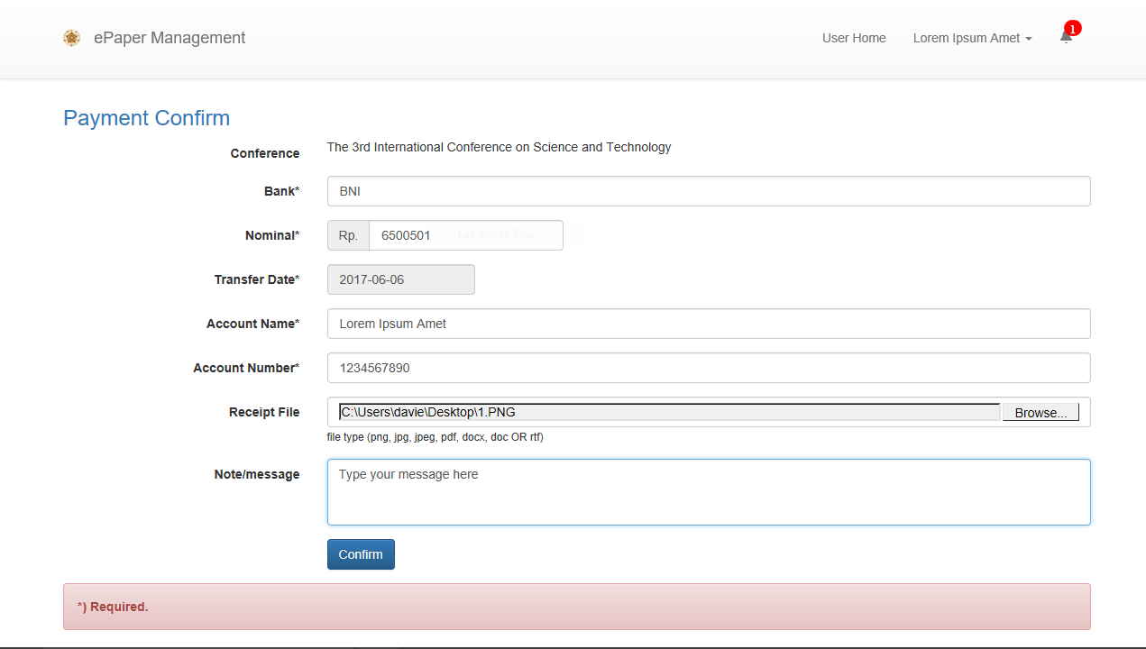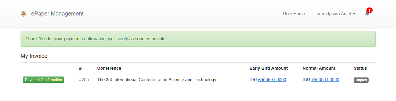 Log into your ePaper Management account, fill in the payment confirmation form, and upload your payment receipt. Alternatively, you can email us the confirmation receipt.